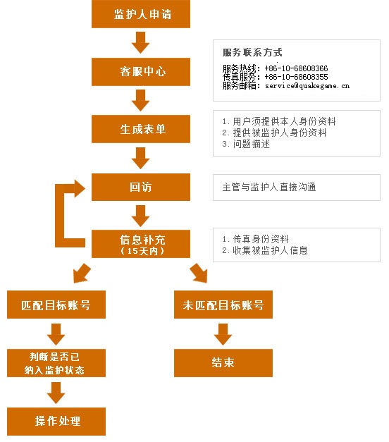 申請人首先緻電遊戲公司獲得服務号碼,使用傳真、信件 、來訪等方式提交資料;受理公司在收到提交材料後,将在48小時内進行電話回訪(不含法定節假日),由受理公司對内容進行核查 。資料提交合格且核對正確的情況下 ,由受理公司對該請求予以受理;資料提交不全面的,由受理公司進行回訪,並提示申請人繼續補充材料;資料提交不合格且不正確的,受理公司有權對該請求予以拒絕,並附說明理由。